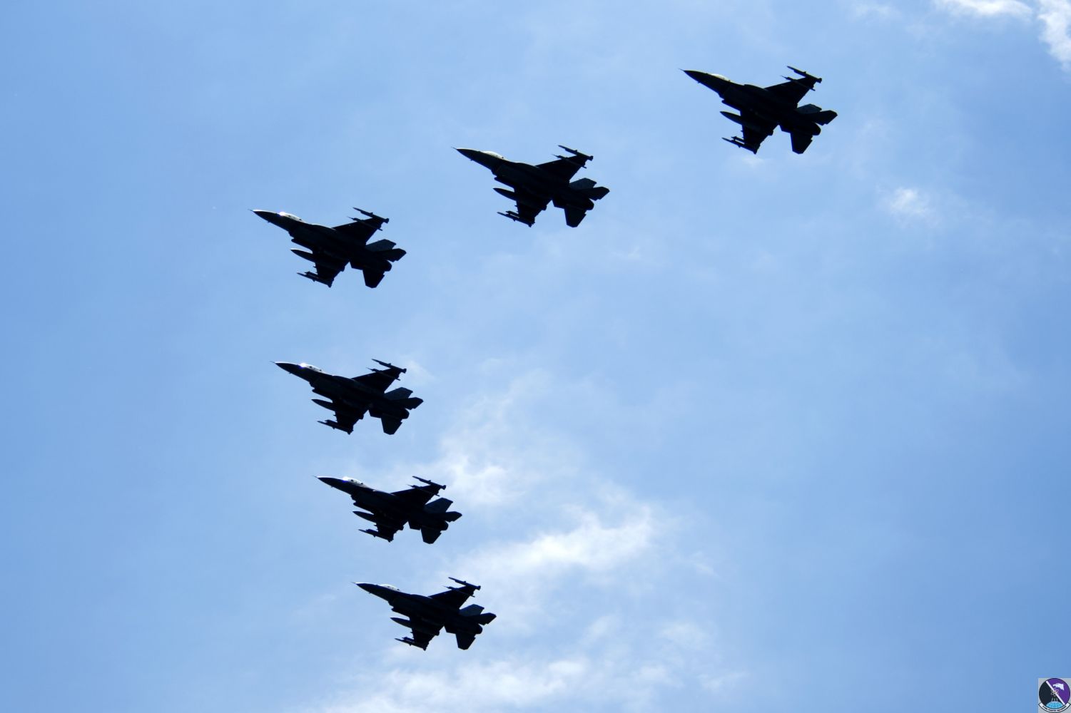 • Several F-16 Fighting Falcons from the 510th Fighter Squadron take-off, March 7, 2017, at Aviano Air Base, Italy. The 510th and 555th Fighter Squadron F-16 Fighting Falcons rely on a secure flightline to perform three to four flights daily. (U.S. Air Force photo by Senior Airman Cory W. Bush)