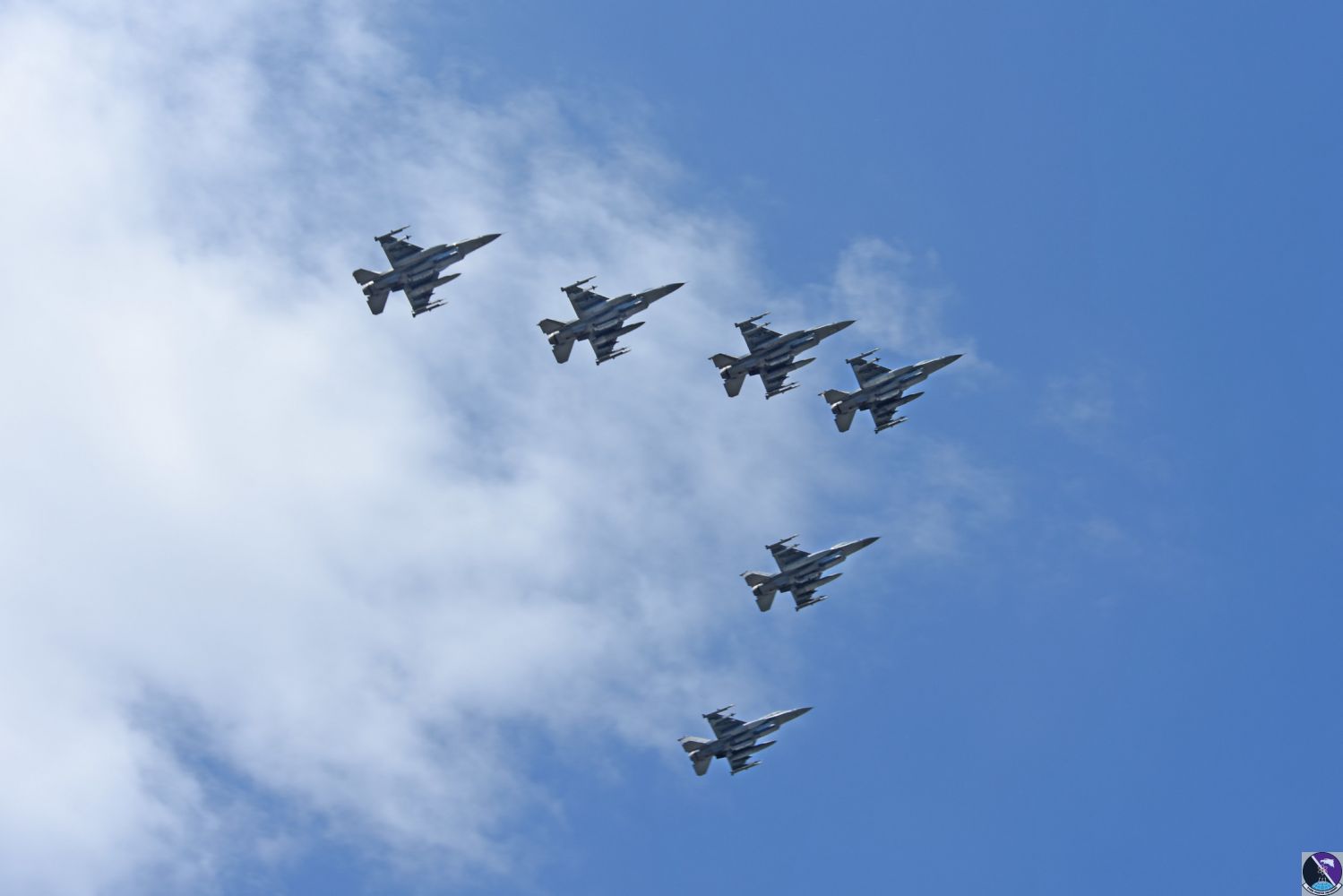 • Six U.S Air Force F-16 Fighting Falcons from the 31st Fighter Wing take flight during an Elephant Walk and COVID-19 flyover at Aviano Air Base, Italy, June 1, 2020. Elephant walks are a show of force, demonstrating the might and power of the U.S. Air Force and its bases. (U.S. Air Force photo by Staff Sgt Valerie Halbert)