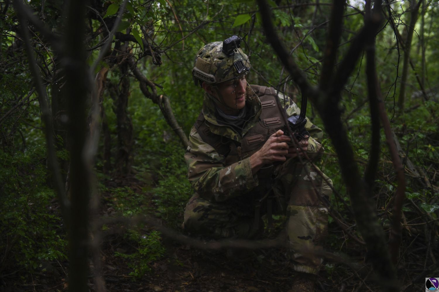 • U.S. Air Force Capt. James Gregory, 510th Fighter Squadron pilot, uses his radio during a Survival, Evasion, Resistance, Escape (SERE) training event at Rivolto Air Base, Italy, June 10, 2020. SERE instructors conduct operations around the world preparing aircrew personnel to return from any type of survival situation. (U.S. Air Force photo by Airman 1st Class Thomas S. Keisler IV)