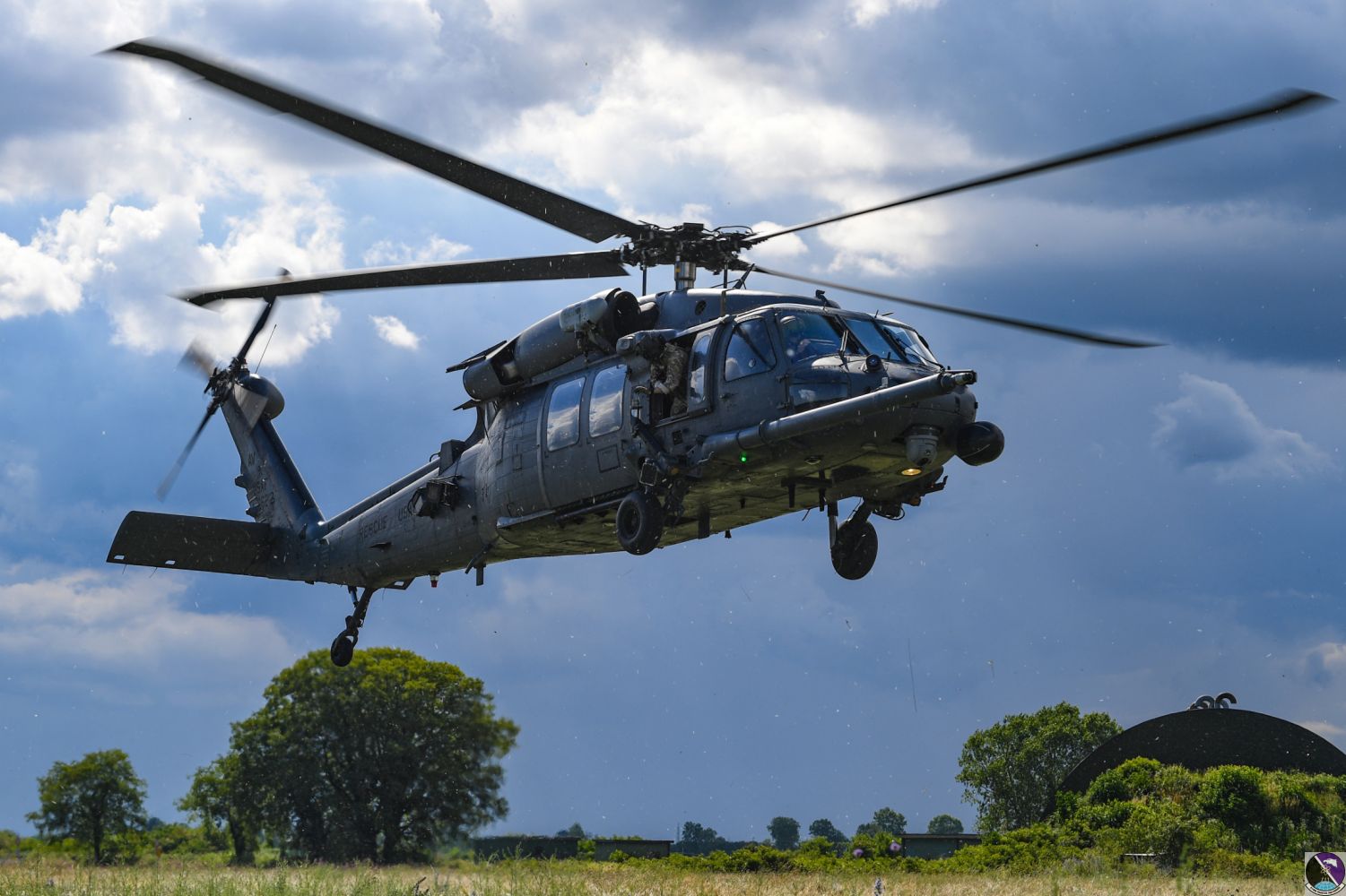 • A U.S. Air Force HH-60G Pave Hawk helicopter assigned to the 56th Rescue Squadron comes in for a landing during an exercise at Rivolto Air Base, Italy, June 11, 2020. The 56th RQS provides a rapidly-deployable, worldwide combat rescue and reaction force response utilizing HH-60G Pave Hawk helicopters. (U.S. Air Force photo by Airman Thomas S. Keisler IV)